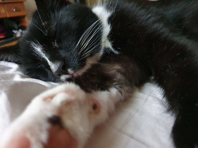 Så ligger Truls der da. I veien for meg. Og breier seg. For han breier seg. Etter at jeg bytta ut senga på 120 cm bredde til en regulerbar på 140 cm tar han mer enn halvparten av plassen. Og han skal aldri ligge inn mot veggen. Nei, han skal ligge i veien for meg, så jeg må snike meg opp, unngå brå bevegelser og klatre forsiktig rundt ham for at han ikke skal bli drit fornærma hvis jeg vil ut av senga. For ellers så hopper han ned, og han kommer ikke tilbake. På lenge. Jeg pleier å sette vekkerklokka til å ringe en halv time før jeg egentlig skal opp så jeg kan kose med ham før dagen begynner. Men jeg må bare klappe der, og litt der, men ikke der og ikke der, for da får jeg føle hans vrede og blod vil flyte. Ihvertfall en liten dråpe. Og så tenker jeg på alle de deilige kattungene jeg aldri vil få se, eller nusse på hvis kråkeslekta har spist øynene mine, og all blåbæra jeg ikke får spist til frokost og svømmeturene om sommeren og at jeg skal lære meg å hekle i vinter, og så begynner jeg å lure på om jeg skal henge opp Sylvi Listhaug i det tauet i stedet, men selvom hun er en katastrofe for norsk politikk, så er hun bare en marionette for Erna som har plassert henne der, sikkert som en kontrastpolitiker så de andre i regjeringa vil se litt bedre ut til sammenligning. Dessuten synes jeg ikke hun fortjener status som martyr, og jeg regner med at Moxnes tar knekken på henne før eller siden uansett. Han har jo gjort det før. En fornøyelse å bevitne. Vi feiret på Blå. Så kommer jeg på at det ikke var mennesker jeg skulle henge opp i trærne med det nylontauet. Hverken meg selv eller Listhaug eller noen andre. Det var hengekøyer. Dessuten flykter jeg ikke fra en krig. Jeg væpner meg til tenna med det jeg trenger; pennen eller sverdet og gode venner.