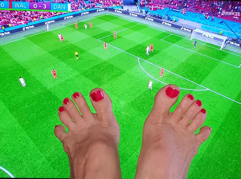 The day before produced football of the kind that’s better than any orgasme; Denmark – Russia 4-1. I wouldn’t missed that for the world. Neither could any sexual thing get me so spontanously exited as the match between Portugal and France the day after the exquisit bore of a game which I would like to forget. I’m not sure if that’s related to my age or gender, but I’m the kind of woman that screams at the tv-screen and tell men to shut the fuck up when I’m watching football, and no man could seduce me infront of nor during such a match. (I need to add that this behaviour’s very much alike how I act in bed). All I think of is the game. (Again; I need to say I don’t play games when it comes to getting laid!) The thing is that sex is predictable and just sex. You never know what football will be, but one thing’s for sure:
