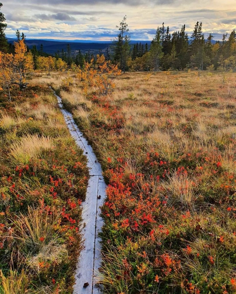 Da jeg hadde ankommet hytta kvelden før føltes stillheten så øredøvende at jeg skyndte meg å tenne bål i peisen bare for å høre lyden av blafrende flammer som åt seg gjennom knitrende vedkubber. Men der jeg sto på trammen denne morgenen var stillheten blitt brutt av villmarkas sanger fra ugler og småfugler og underskog som raslet under lette poter. Jeg trakk den friske høstlufta dypt ned i lungene mens tankene vandret mellom valget av stier jeg kunne gå i løpet av dagen; over fjell, ned dalsøkk og langs smaragdgrønne bekker.